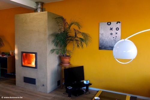 Deze recent verbouwde en zeer goed geïsoleerde woning kreeg er in 2019 nog een Finoven bij. Deze zal niet alleen een aangenamere warmte verspreiden, hij werd ook wat groter gedimensioneerd om via de warmtewisselaar ook nog eens het water voor de centrale verwarming voor te verwarmen. Zo kan ook de rest van de woning met de Finoven verwarmd worden.